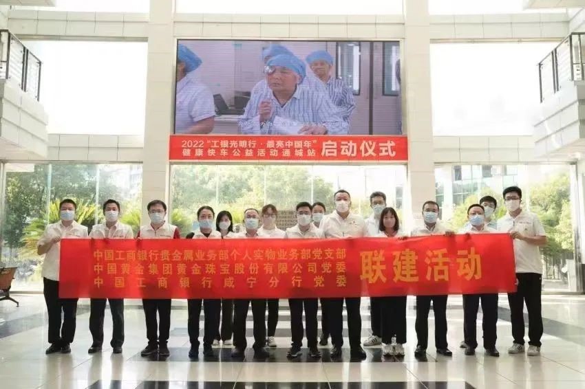 9月15日至22日,作为中国工商银行贵金属业务部个人实物业务部党支部、中国黄金集团黄金珠宝股份有限公司党委、中国工商银行咸宁分行党委开展党建联建的“重头戏”,由中国黄金联合工商银行、北京工美组织发起的“工银光明行—最亮中国年”主题公益活动走进湖北通城县,通过“健康快车”火车医院项目为当地200名白内障患者恢复视力、带来光明。
