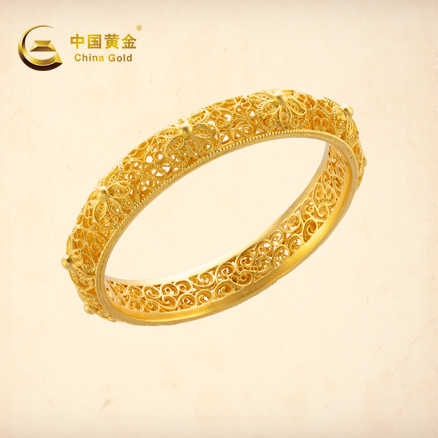 承福金系列 手镯-圆管金刚镯龙凤(内纹)